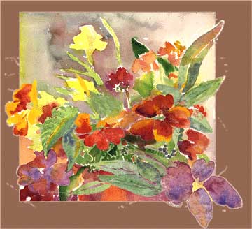 Watercolor of impatiens combined with |