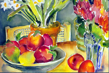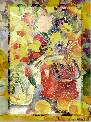 Here a traditional watercolor was modified in Photoshop. |