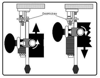 But now the fine adjustment doesn't work. If you can connect the depth shaft to the depth of cut turret you'd be in business. With a little hacksawing and a bit of drilling and filing you can make a doo hicky that will make it work. Here's how it's done and how it works.