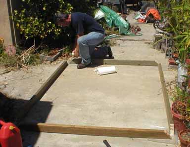 Couldn't glue this puppy up on my bench so it was done on my walkway/driveway - with wax paper under the corners to keep glue squeeze out off the concrete.