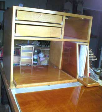 Built, finished and put in the pull out "box" for Scary Sharp plates on more full extension bottom mounted glides. Got really into garnet shellac -and got carried away - 20-30 coats.