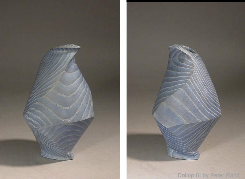 Here's two views of Peter's earlier 3 axes Dollop Series. His use of color to accentuate the grain and the multiple surfaces of the piece demonstrate his sense of aesthetics. Fascinating piece.