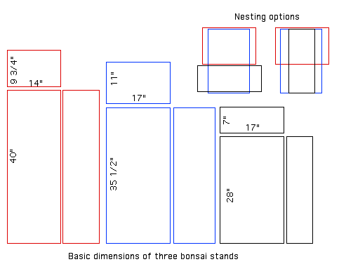 Here's how these bonsai stands were developedl. As it seems to go with me, things started out simple and straight foreward and then . . .WHY NOT have the stands nest? They should be different heights anyway so why not? This is what I started with.