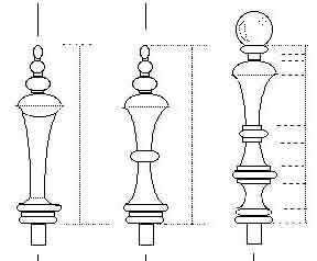 And then, once again, the design began taking on a life of its own. Magic wands need a magic rack. Ovals began appearing as design elements - one of birdseye maple ply, two of claro walnut. And the vertical sides needed something to cap off both ends. Given that this was going to be a Magic Wands rack, there had to be an acorn somewhere in the design, the idea being the "large oak trees from little acorns grow" - the potential in the seed of belief that can grow into who knows what. So the lower "finials" (?) idea was done. The upper finials needed something different - but still magical. Another turned piece. More noodling to scale in SuperPaint and the idea evolved (see below) , this time topped with a small "crystal" ball (actually they're plastic but they play with light like a crystal ball does.