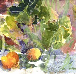 Watercolor of impatiens combined with |